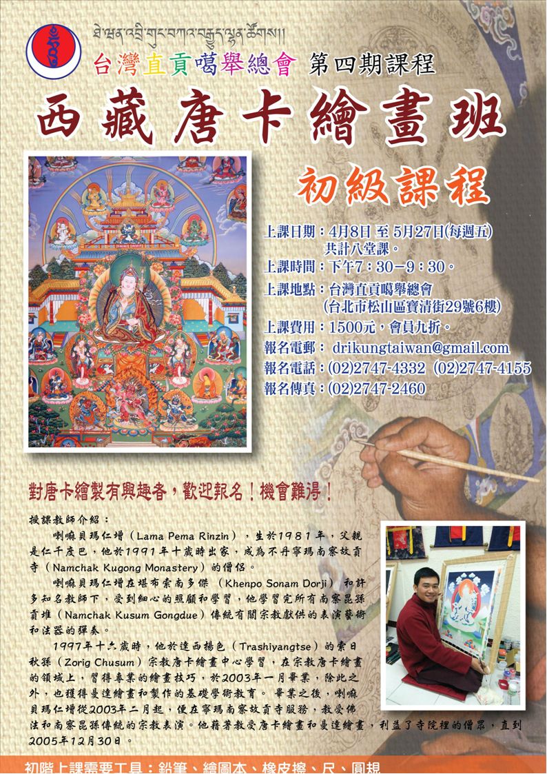 本次預計第四期課程是---唐卡繪畫班,聘請喇嘛貝瑪仁增教授。